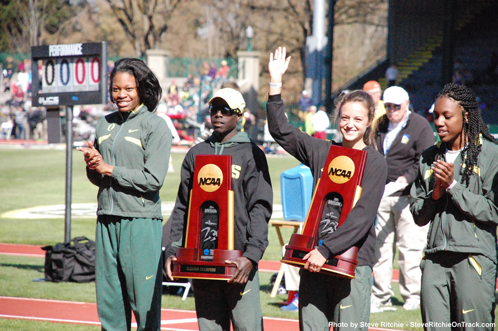 Many of Oregon's top performers of both genders competed last Friday and Saturday in Albuquerque, New Mexico, and upset the form charts in winning their two national titles. For the Oregon women, the indoor title was their