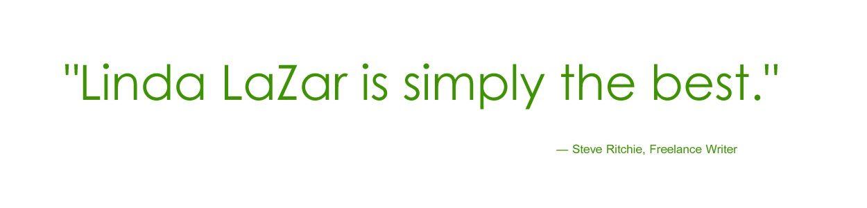 Anyone who is fortunate enough to hire Linda for their business—whether writing, editing, public relations, marketing, or Web design—will quickly realize they have found the golden ticket with Linda LaZar."